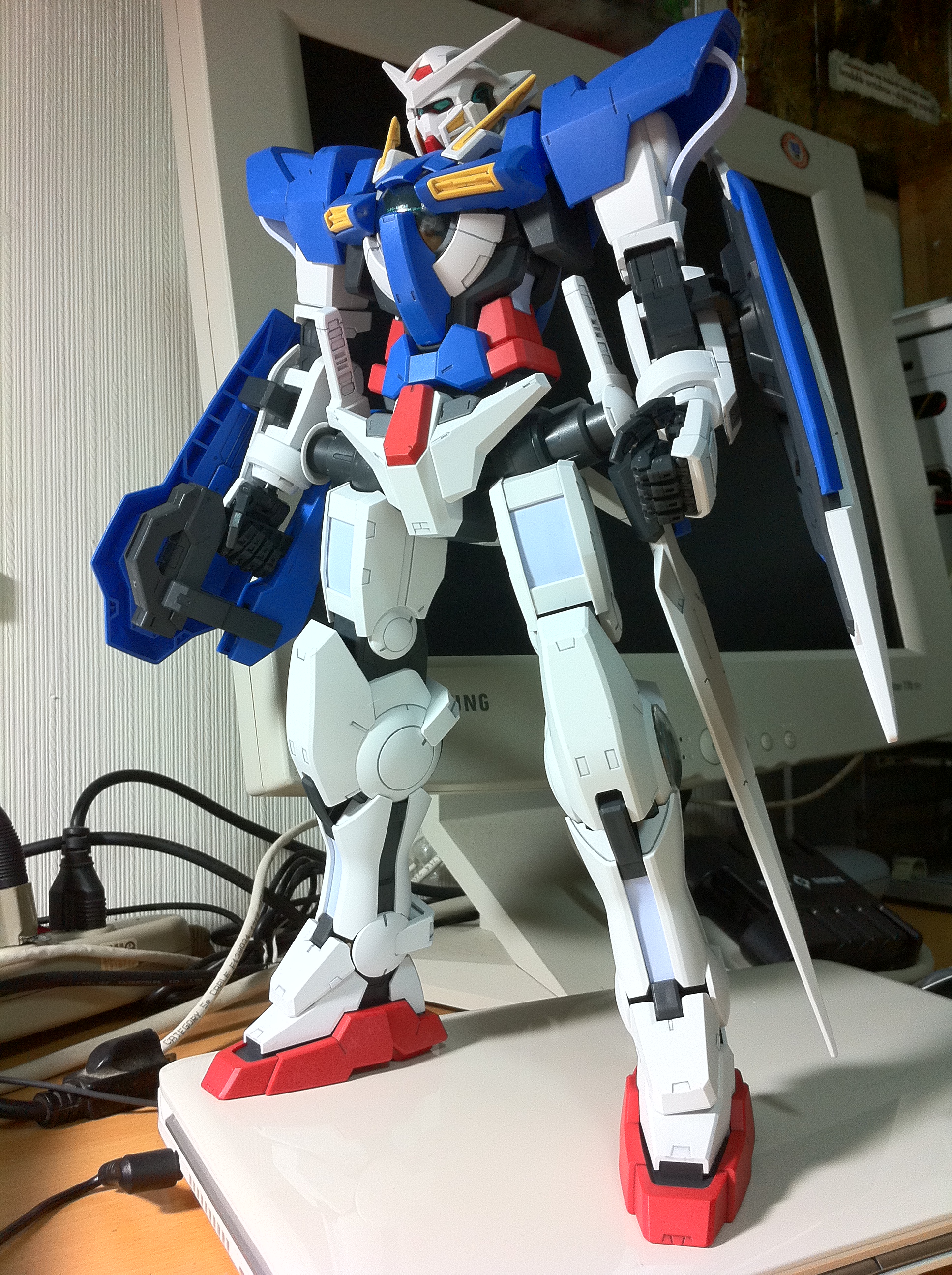 最近休假沒事就做鋼彈模型,這隻拼起來很快,難度不高,尺寸也很大,加了墨線跟噴上消光,