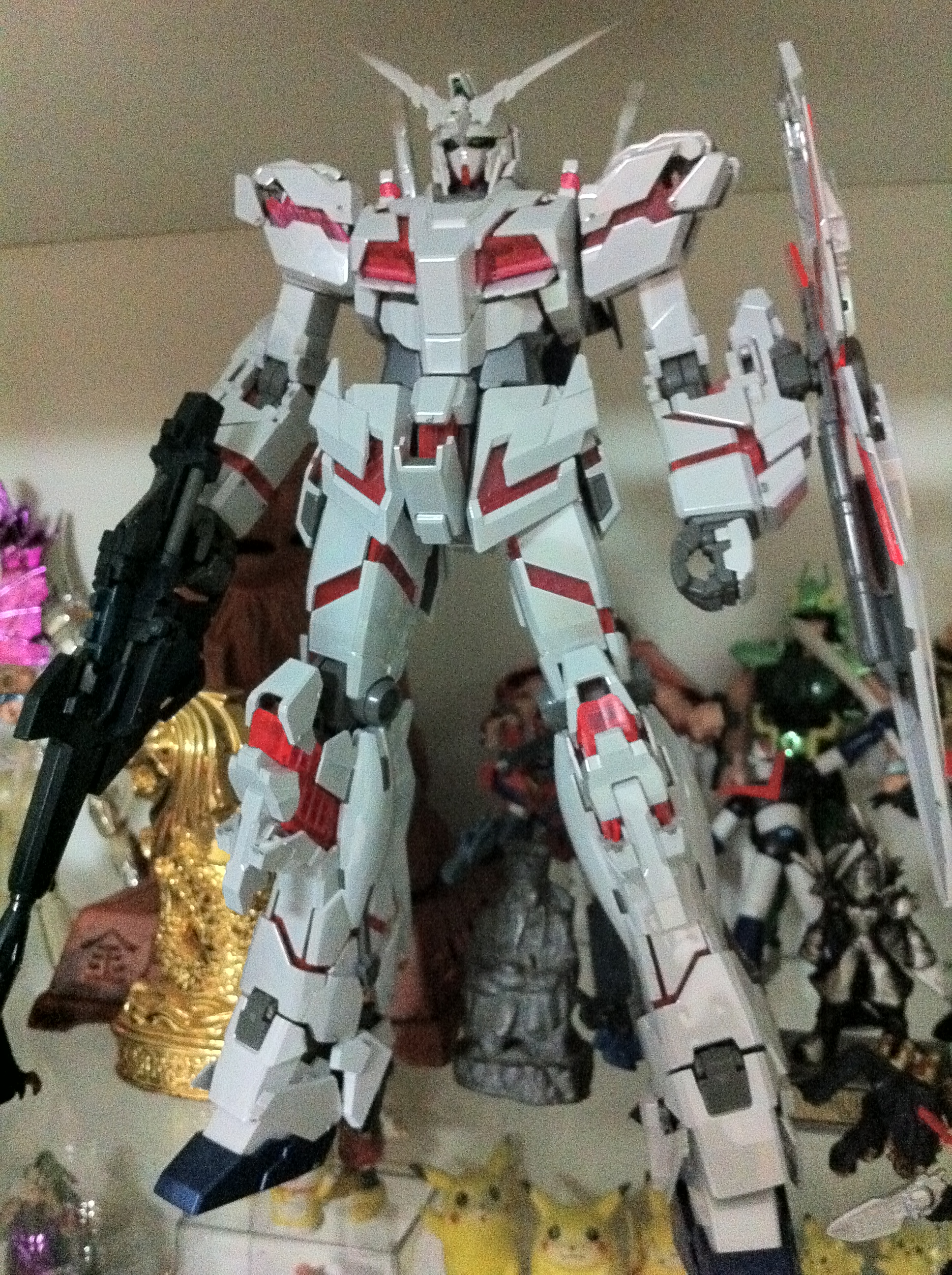 同場加映去年做的獨角獸鋼彈,是電鍍版的,水貼還沒貼。